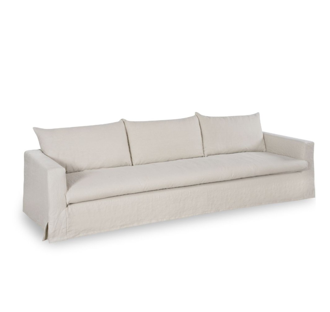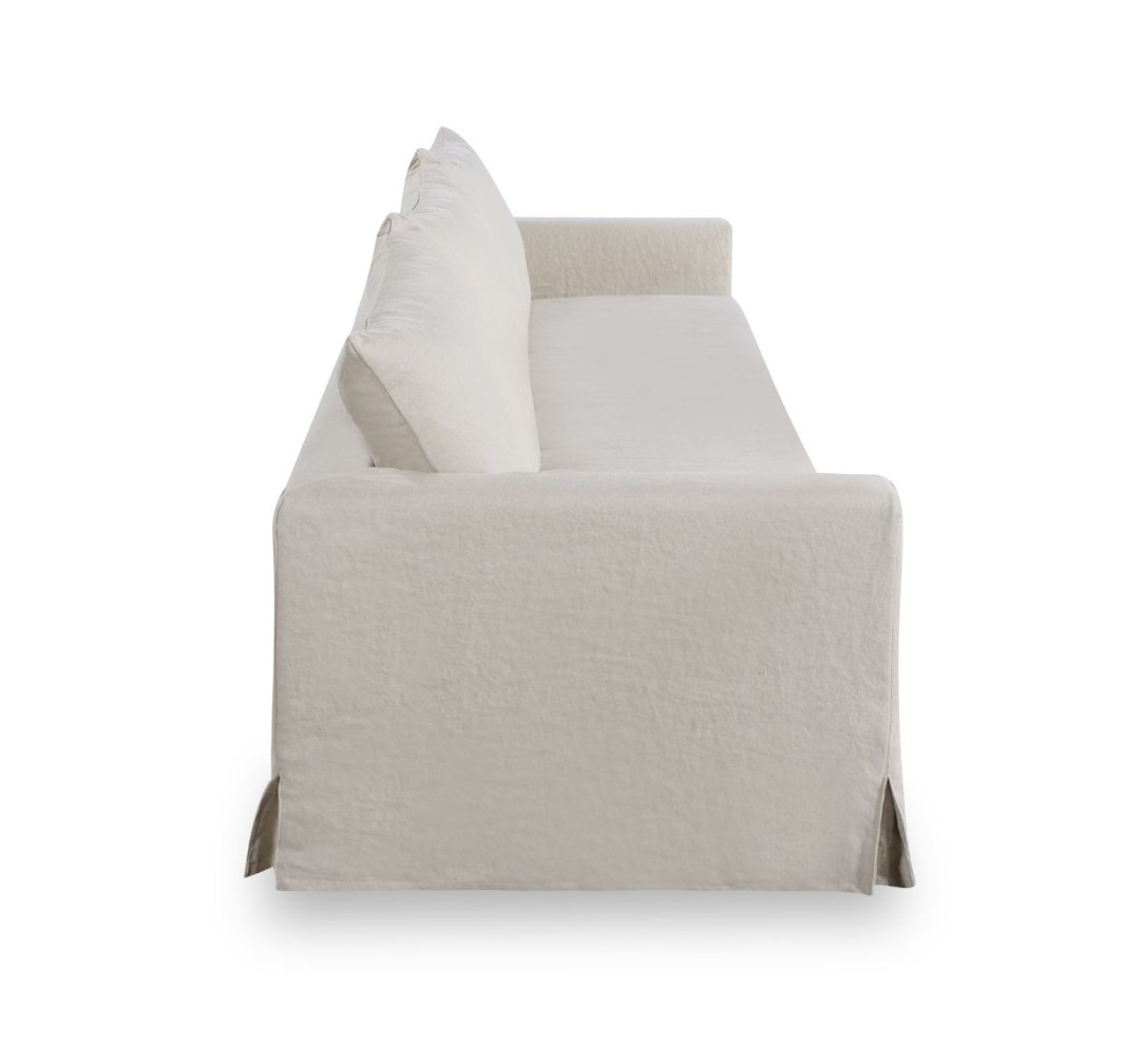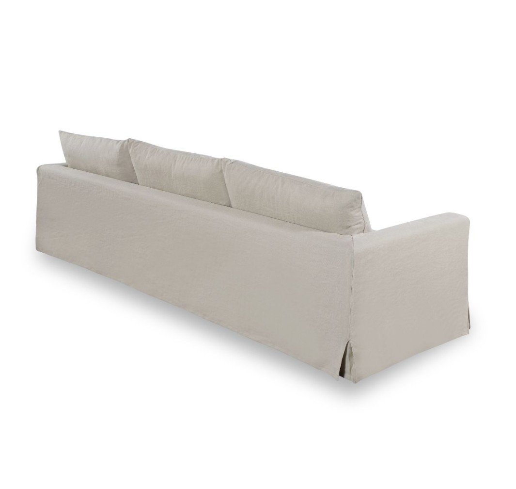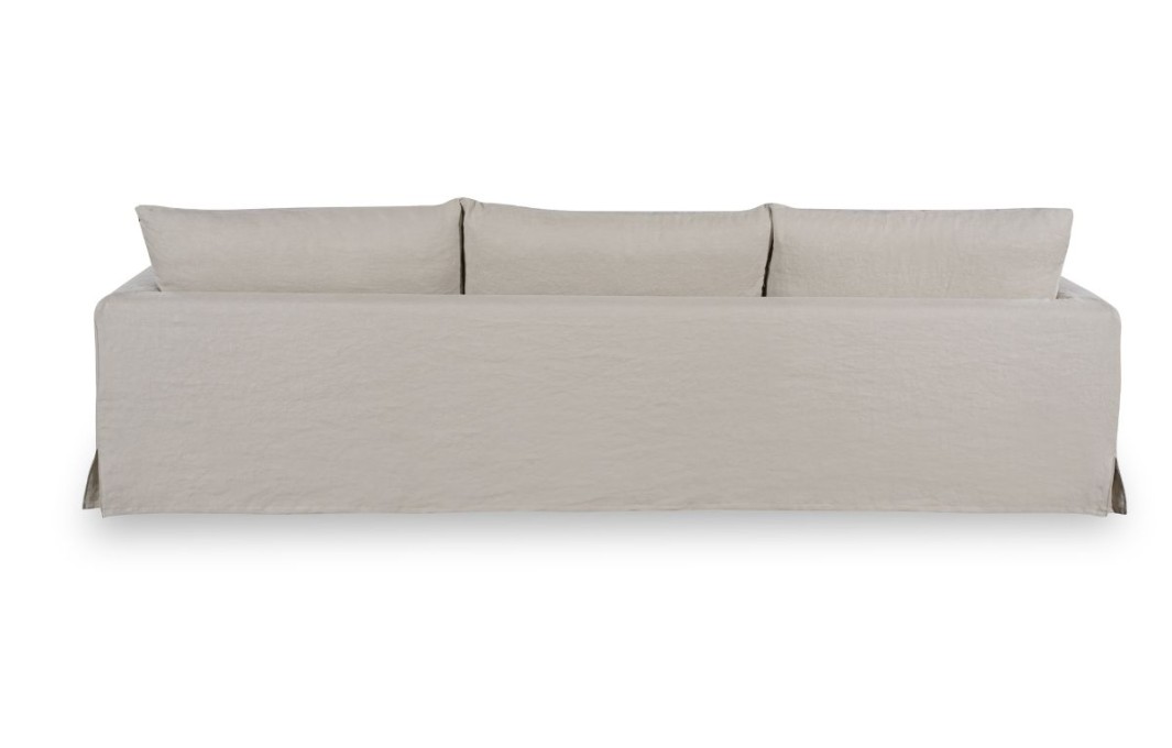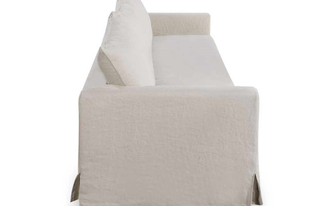 Estructura de madera de pino maciza. Asiento formado por muelles recubiertos de foam ignífugo semisuave, y poliuretano de 30 kg Respaldo formado por cincha elástica indeformable recubierta de foam ignífugo. Almohadones de algodón, rellenos de plumón de oca y fibra siliconada. Desenfundable Medida de brazo: 14 cm Altura de sentada: 44 cm