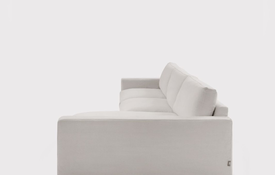 El interior está compuesto de madera de pino mezclada con DM de 2 cm de grosor. Todo el armazón del sofá está revestido con espuma de poliuretano de 20 kg de grosor de 1,5 cm y tapizado con famizado con 2 ml de espuma. Los asientos y respaldo cuentan con cincha elástica de dos densidades, siendo más firme para el asiento y más suave para el respaldo. Los rellenos de los almohadones de los asientos son de espuma de poliuretano de 35 kg de 14 cm, cubiertos con un alma de 12 cm rellena de fibra hueca de alta densidad. Los respaldos de los almohadones también están rellenos de fibra hueca de alta densidad.